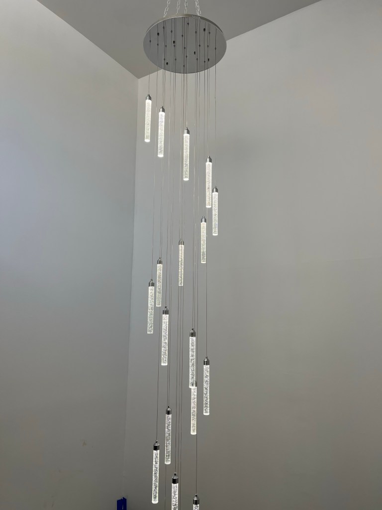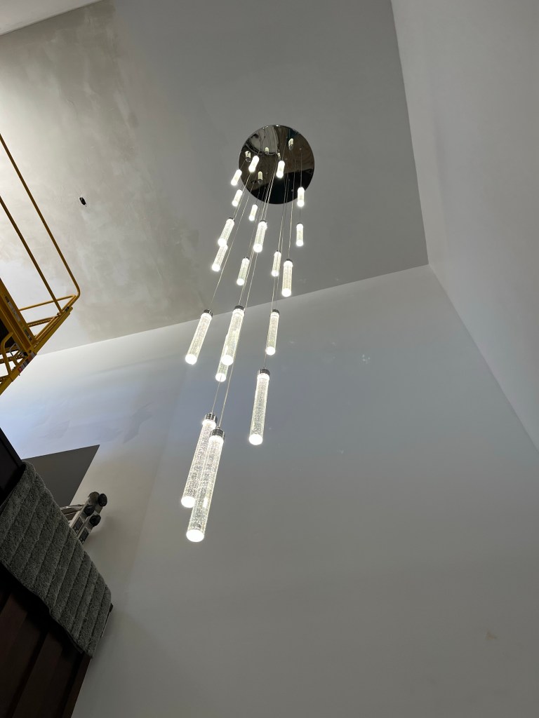 We recently had the opportunity to install a stunning chandelier in a living room with a 30-foot high ceiling. The installation was no easy feat – our team had to build and work on tall scaffolding to get the job done. But the end result was worth it! The chandelier is absolutely beautiful and adds a touch of elegance. After the installation was complete, we remudded and painted the ceiling to ensure it looked as good as new. Working at such heights was definitely a little scary, but we’re thrilled with how everything turned out. The space is now more beautiful than ever!